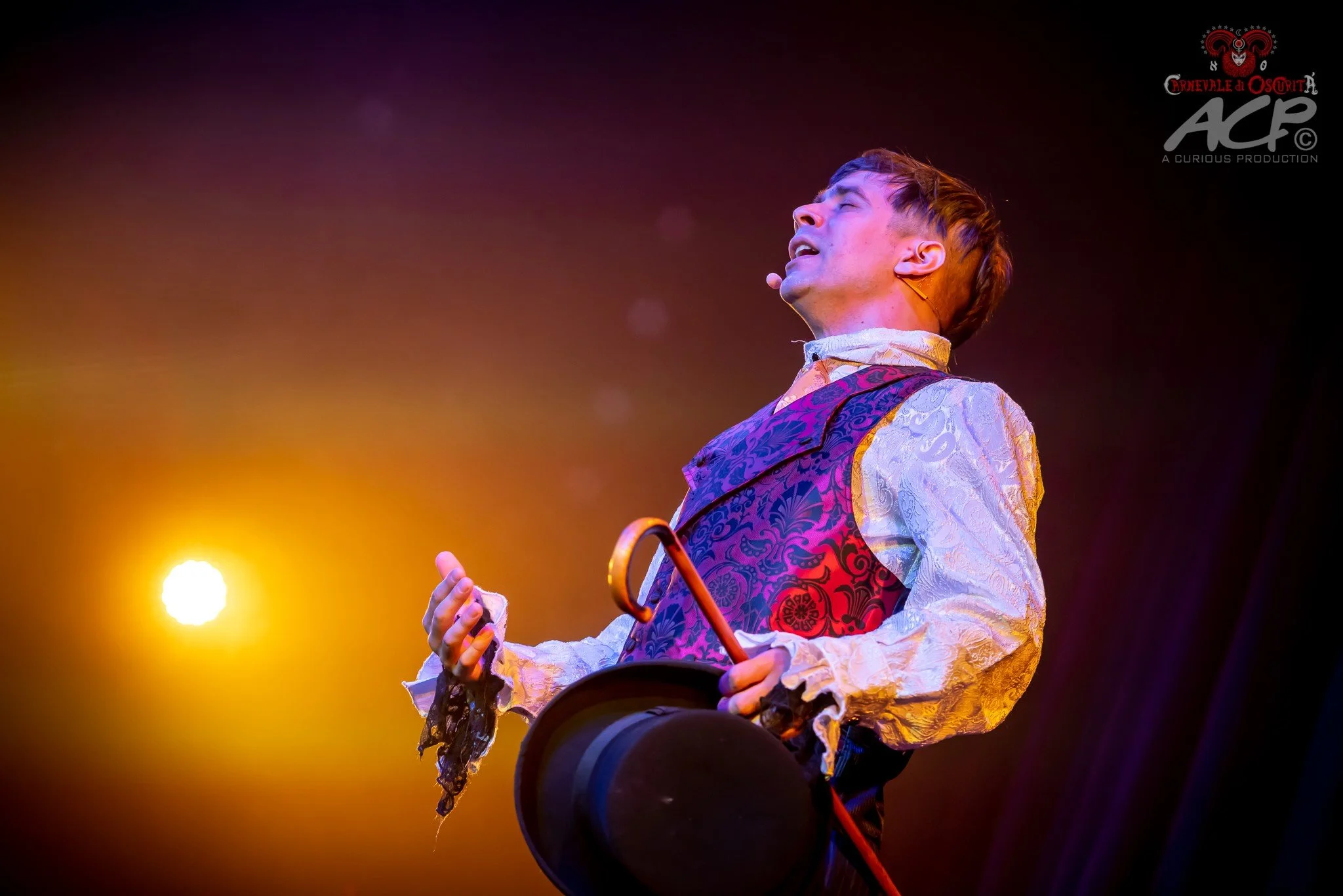 Carnevale di Oscurità was a highly collaborative production that involved a huge number of incredibly talented artists. The show was conceived to be an intersection of game, scripted, and unscripted elements, creating an immersive and highly interactive world that encourages the audience to take an active role in solving the mysteries of the carnival presented by the cast of characters— each themed after a Major Arcana card of the Tarot. Several interwoven storylines intersect throughout the course of the evening’s events, and audience participants must earn their invitation to stay for the finale. The outcome of the final scene is determined by the influence of the audience’s choices, and there are three different endings to the show.